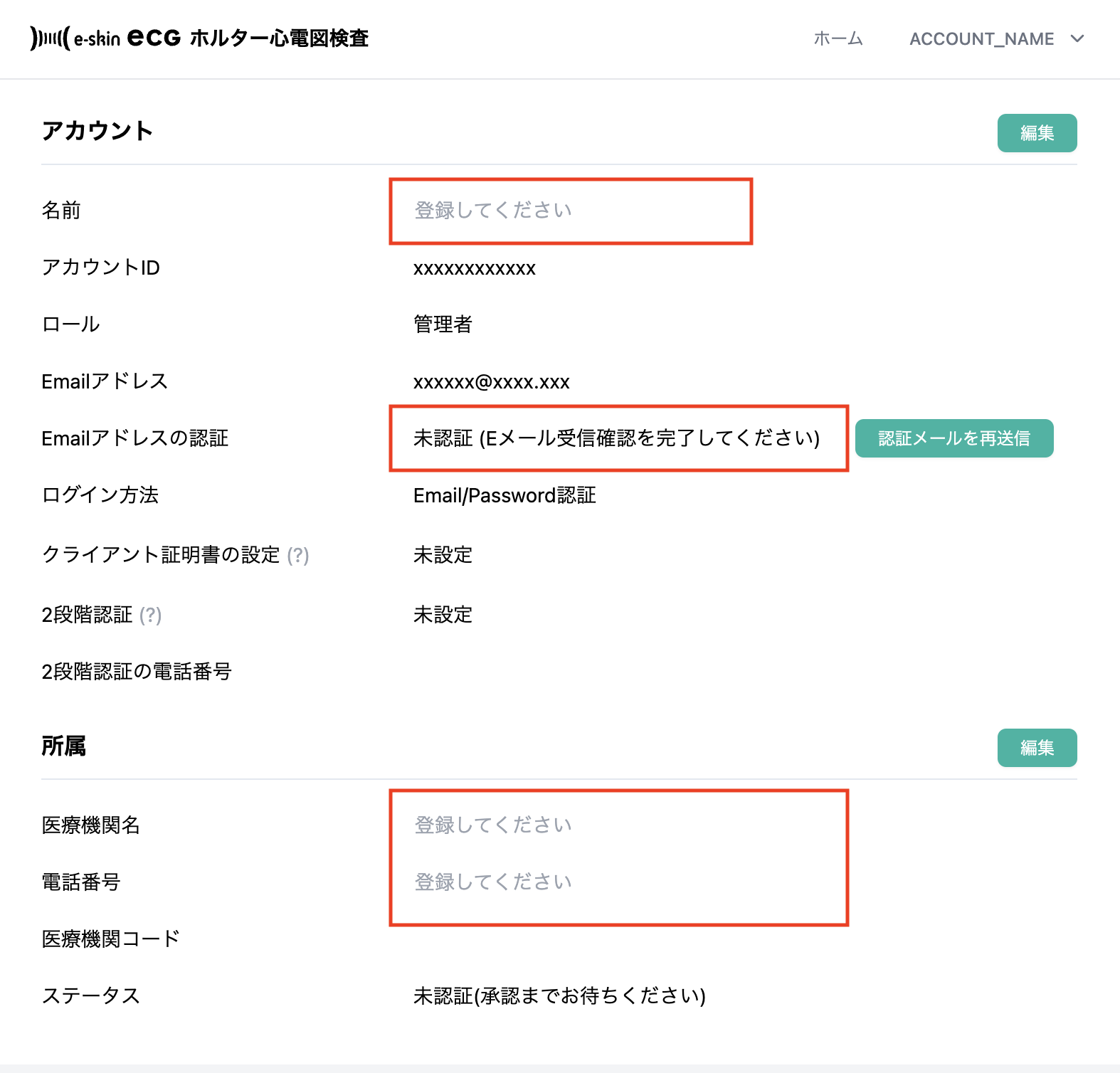 - 最初に、利用開始する医療機関の(代表)管理者アカウントを、一つ作成します