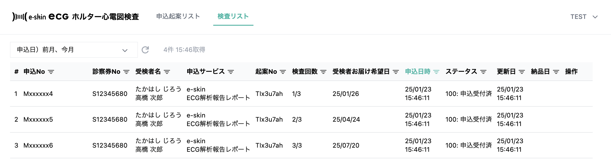 - 「検査」リストで、「検査回数分の行」が追加されます