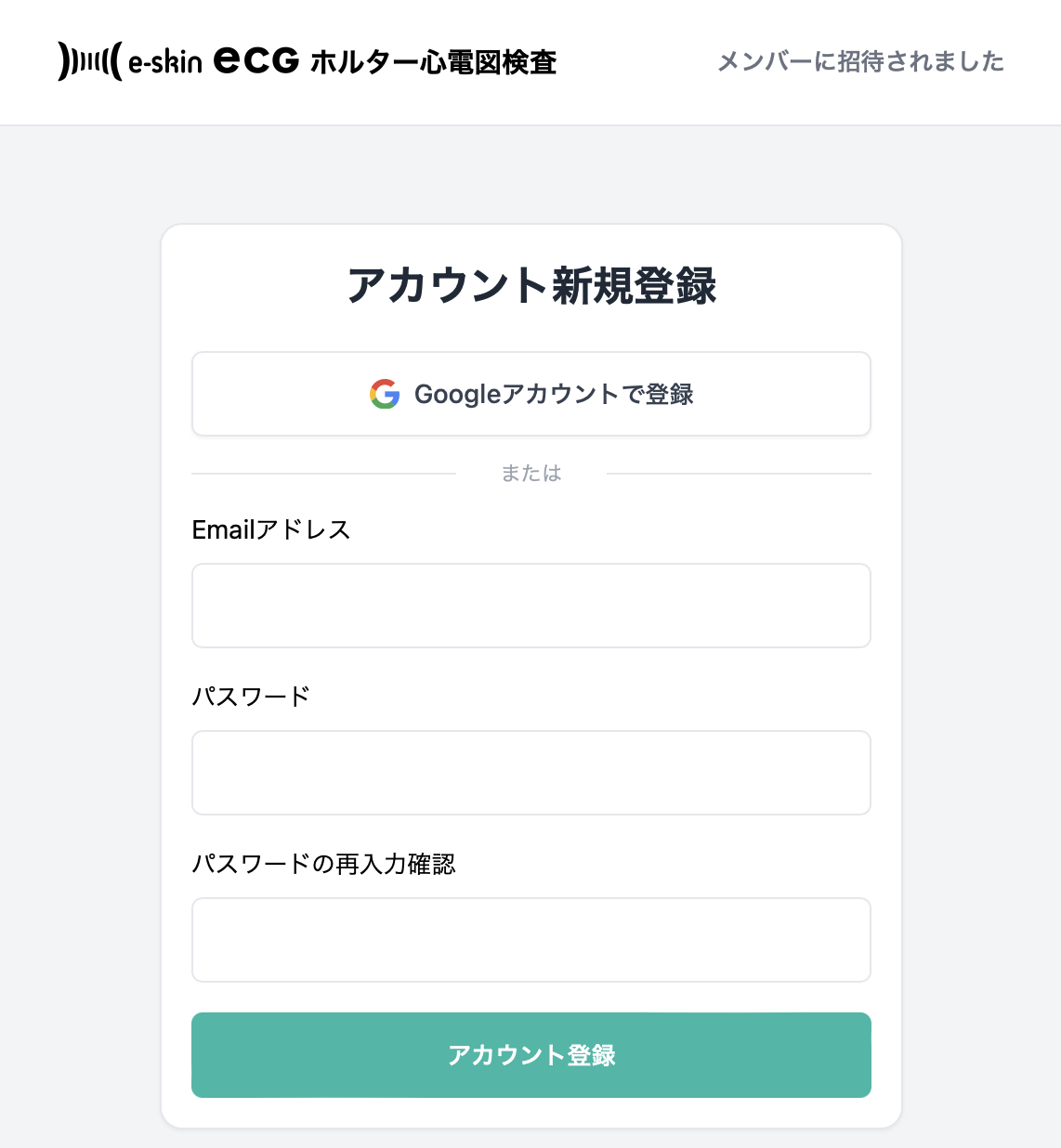 招待メンバーが、リンクをクリックすると、招待モードのアカウント登録画面が表示されます。