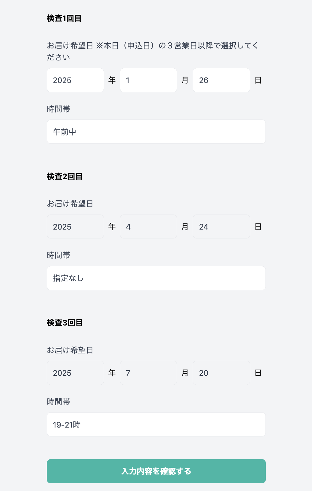 1回目(直近)は、「お届け希望日」を、調整入力が可能