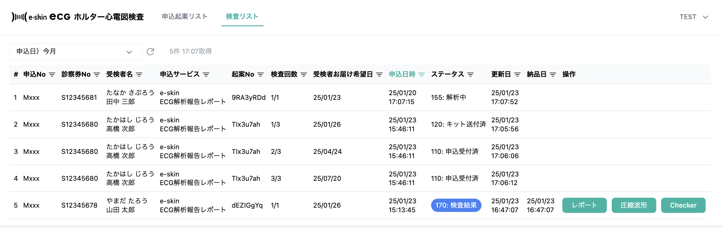 検査ステータス一覧