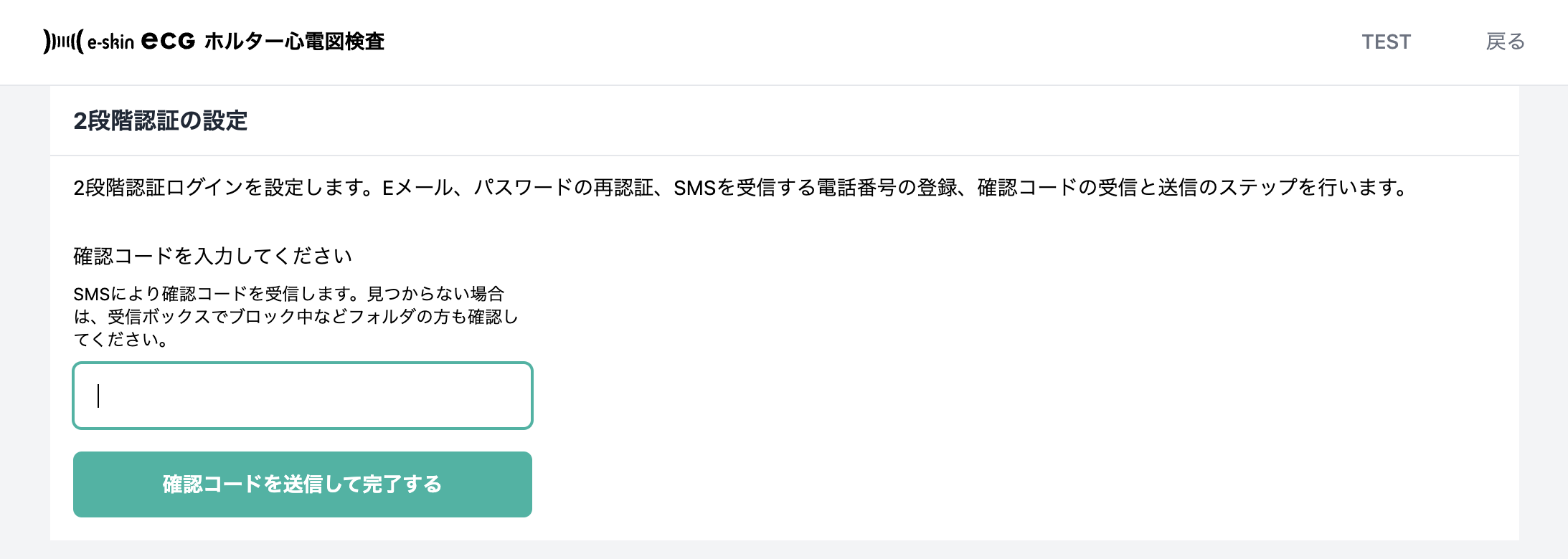 - SMSメッセージに届く確認コードを入力して、設定を完了します
